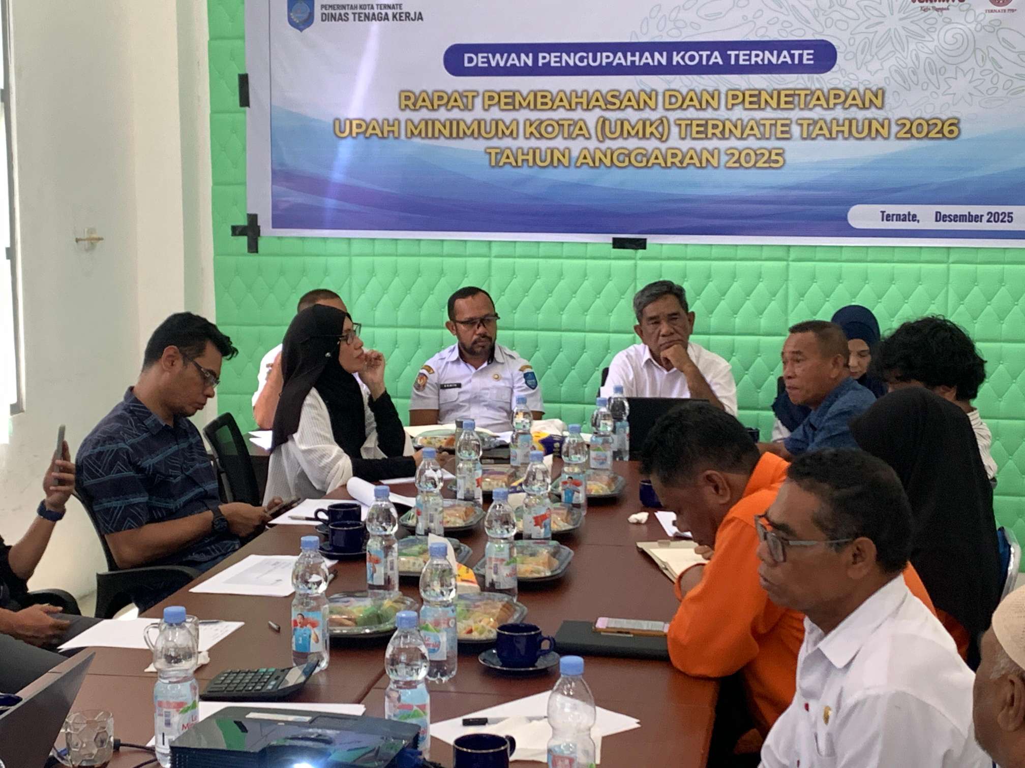Ternate – Upah Minimum Kota (UMK) Kota Ternate untuk tahun 2026, resmi ditetapkan melalui rapat Tim Dewan Pengupahan, pada Rabu, 24 Desember 2025 di ruang rapat Kantor Dinas Tenaga Kerja (Disnaker) Kota Ternate, Provinsi Maluku Utara (Malut).